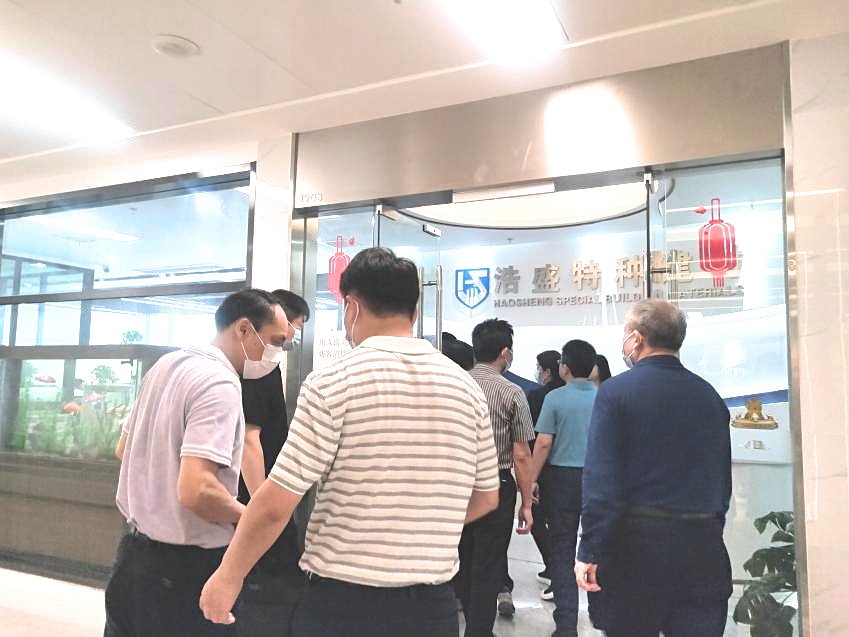 驻足会议室一侧,视察组一行领导结合企业文化墙与现场讲解,初步了解公司整体运营、市场布局、战略客户与工程案例。