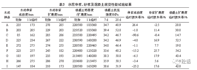 9家水泥厂P·O42.5水泥净浆流动度、砂浆扩展度、混凝土扩展度试验结果见表3。